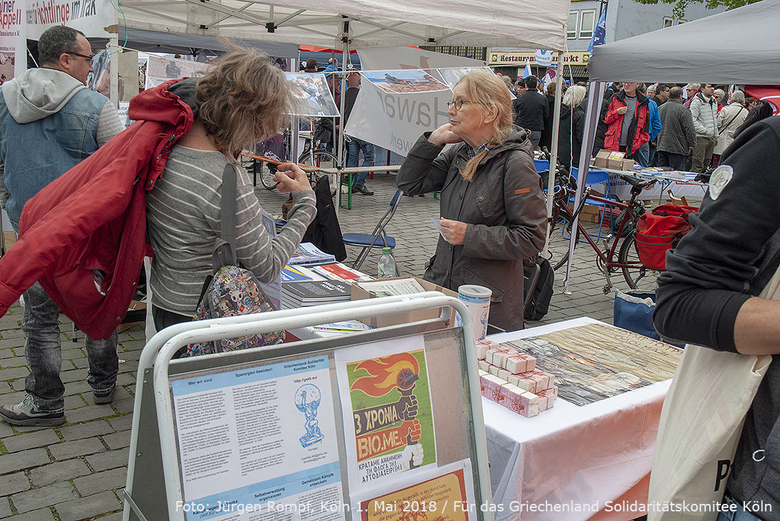 Wie jedes Jahr informierten sich zahlreiche Besucher*innen an unserem Stand und unterstützten unsere Solidaritätsarbeit mit Spenden. Besonders begehrt waren die Seifen des besetzten und selbstverwalteten Betriebs Vio.me, die zum Solidaritätspreis erworben werden konnten.