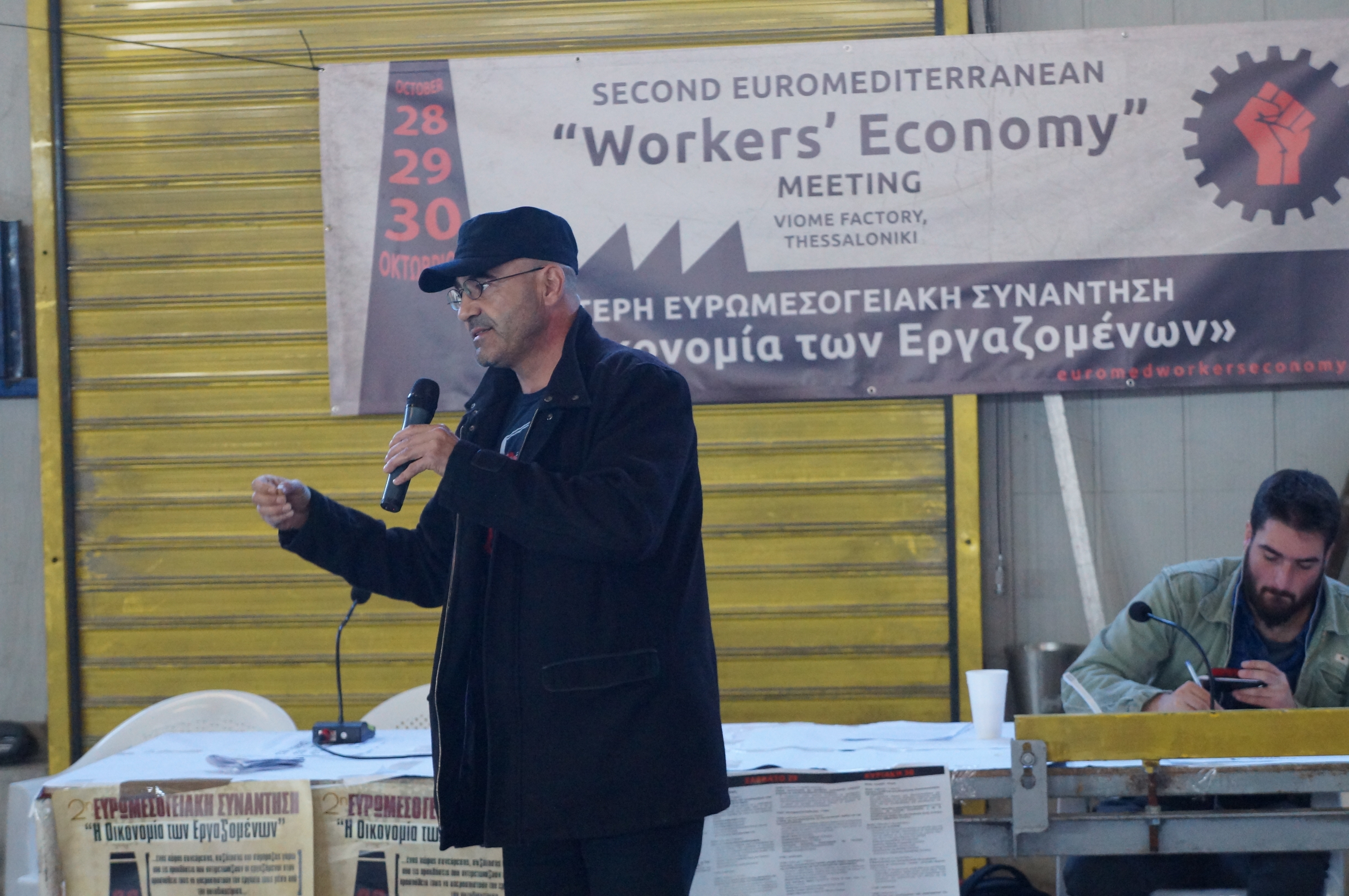 Am zweiten Tag der Euromediterranean „Workers Economy“ Konferenz fanden sich mit über 250 Besucher_innen deutlich mehr Leute als am Vortag in der Haupthalle des selbstverwalteten Betriebs Vio.Me ein. Im Unterschied zum ersten Tag wurden verschiedene Fragen der Selbstverwaltung konkreter diskutiert. So erläuterten Vertreter_innen des Sozialen Zentrums „Micropolis“ aus Thessaloniki, welche Schwierigkeiten sich beim Aufbau einer sozialen, auf Solidarität beruhenden, Ökonomie auftun. Hier wurde deutlich, welche Zusammenhänge und Ähnlichkeiten zwischen einer selbstverwalteten Kooperative und der Organisierung sozialer Bewegungen bestehen. Dazu werden wir in den nächsten Tagen noch einmal ausführlicher berichten.